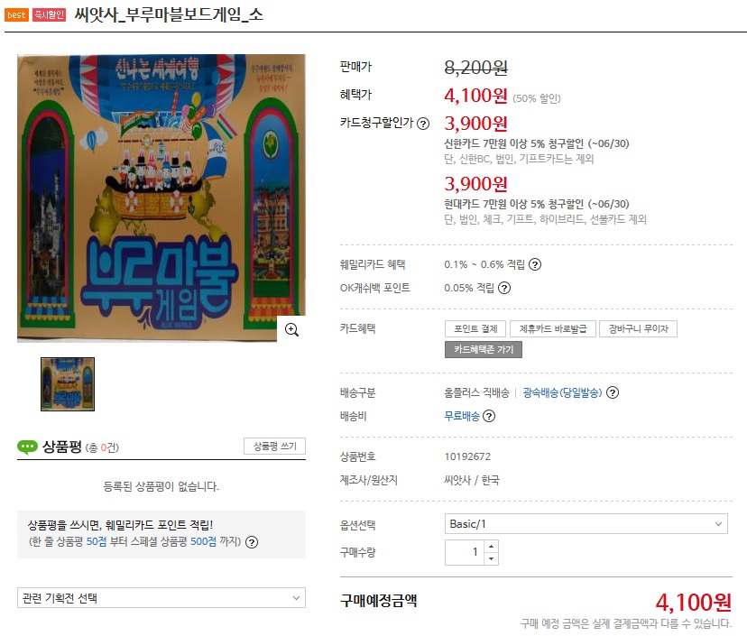 부루마불 게임 있으면 좋아할 것 같아서 홈플러스몰에서 주문했습니다.