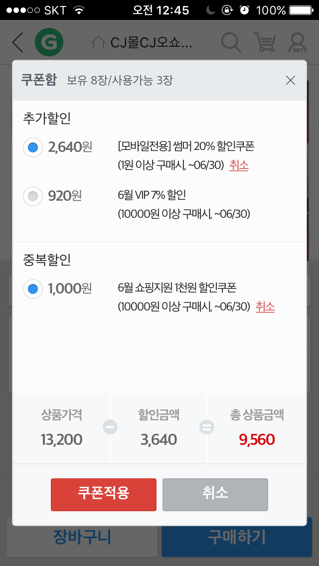 썸머쿠폰이 만두에 적용이 되다니ㄷㄷ