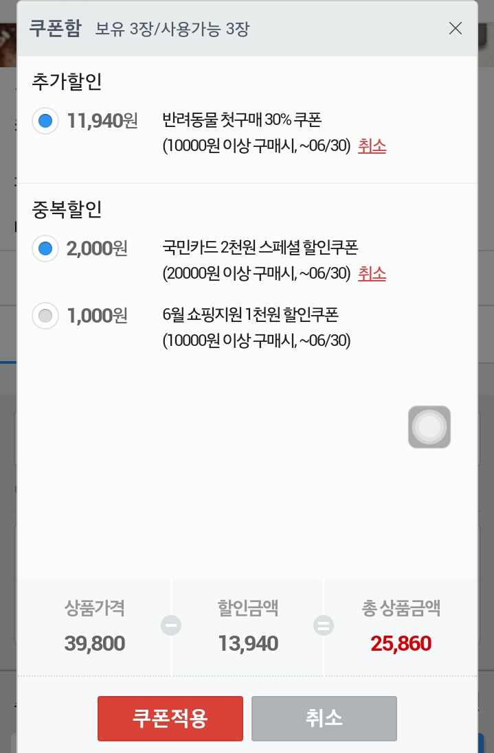 ID가 두개인데 하나는 현대카드, 다른하나는 국민카드 할인쿠폰이 있었어요