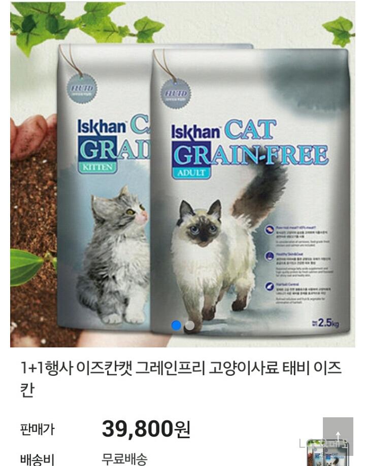 곡물이 포함되지 않은 사료라 고양이들 알러지에 그나마 저렴한 것 중에 가격대비 품질이 좋은 사료라고 합니다.