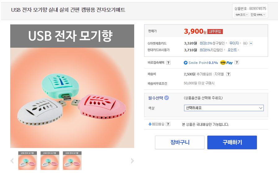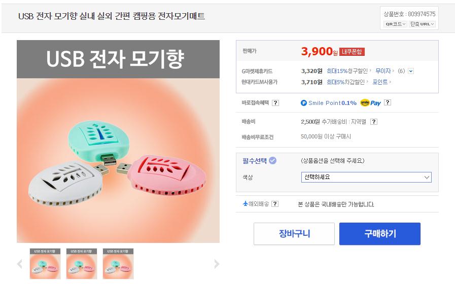 [G마켓] USB 전자모기향 (3900/2500) > 국내핫딜