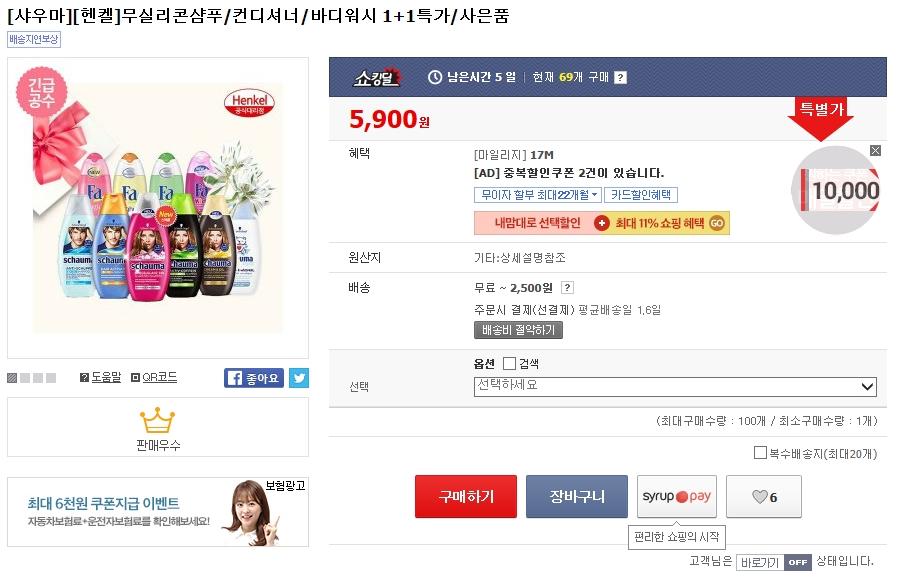 음 3월말에 6천에 원플러스원 구매햇엇는데