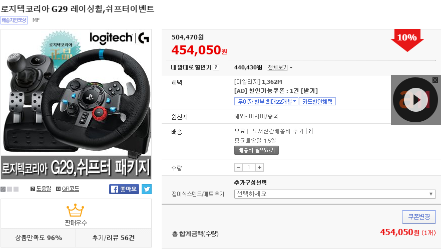 싼데 비싸네요 .. 레이싱게임은 안하지만 하나 갖고싶...