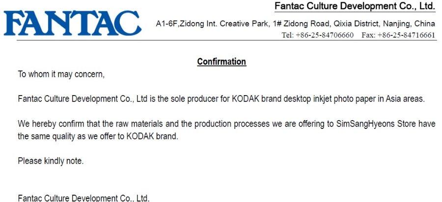 코닥에 포토용지를 공급하는 FANTAC 사에서,