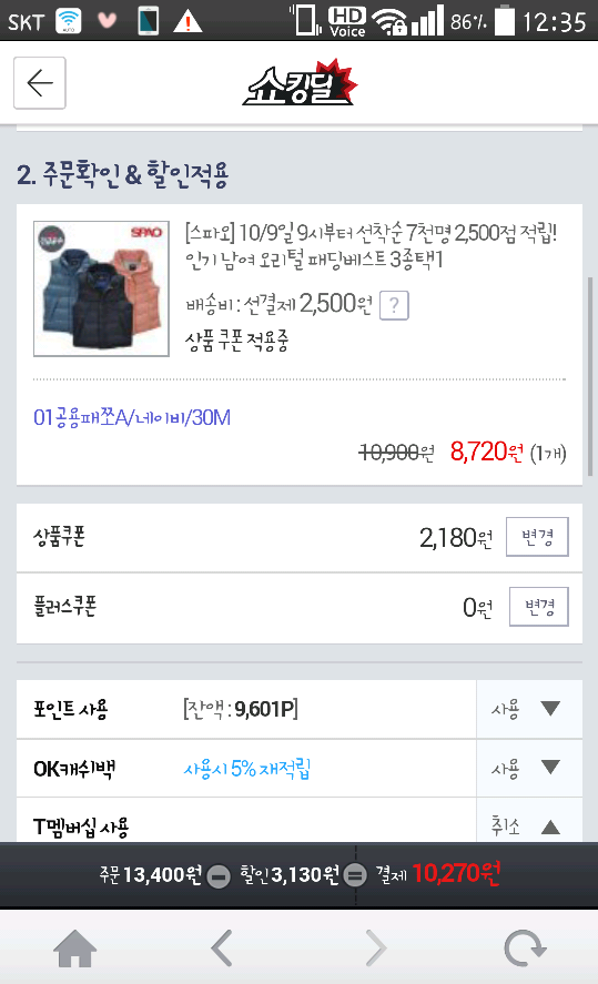 *T멤버십 사용: 950원 할인(7,770/2500)