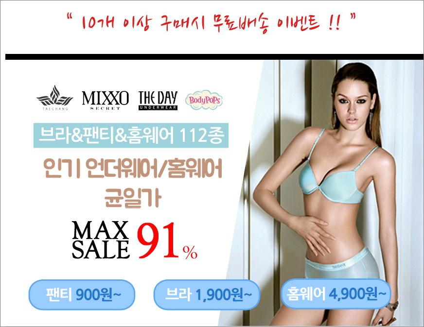 태창, 미쏘, 바디팝스, 더데이 브랜드 속옷이 900원부터 다양하게 나왔습니다.