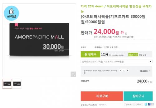 아모레 퍼시픽 30,000원권 24,000원 이에요