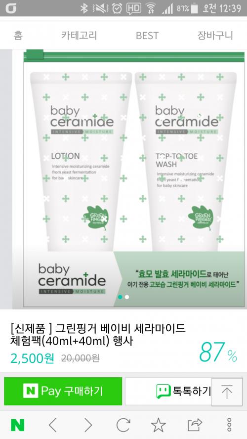 그린핑거 베이비 세라마이드 체험팩(40ml+40ml)