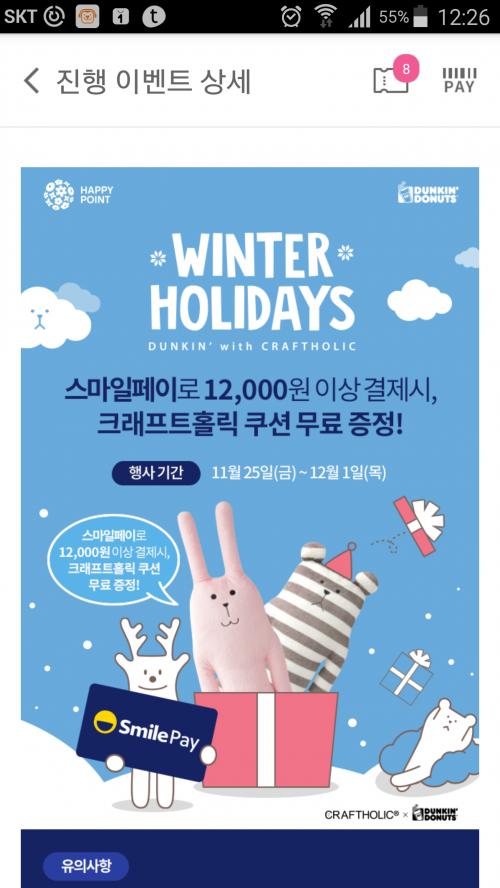 던킨 매장에서 12,000원 이상 해피포인트앱으로 스마일페이 결제시 인형 공짜로 주네요
