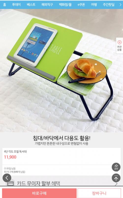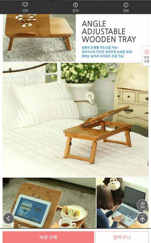 사진에서처럼 침대에서 간단히 테이블 용도로 사용하는 것도 괜찮을 것 같습니다