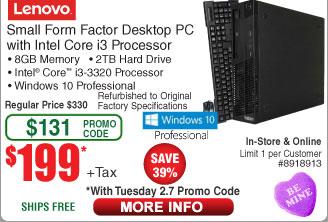 LENOVO M72E Refurbished i3-3320,8GB,2TB,WIN 10