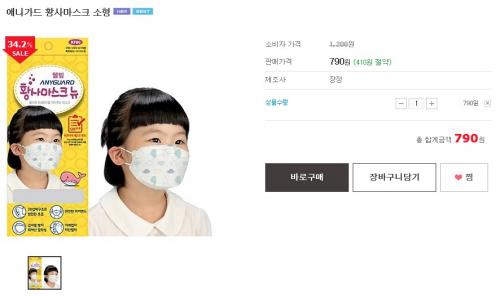황사마스크구요 사진은 조카걸로 예전에 구매한거라 아이들거구요 어른것도 가격은 같아요