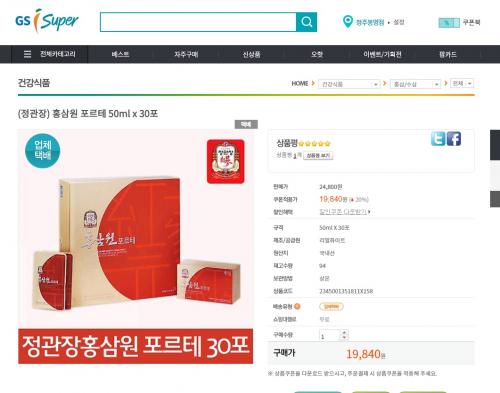 선물용이라 '정관장' 붙은걸로 만족하고.. 한개 구입해도 배송비는 무료네요.