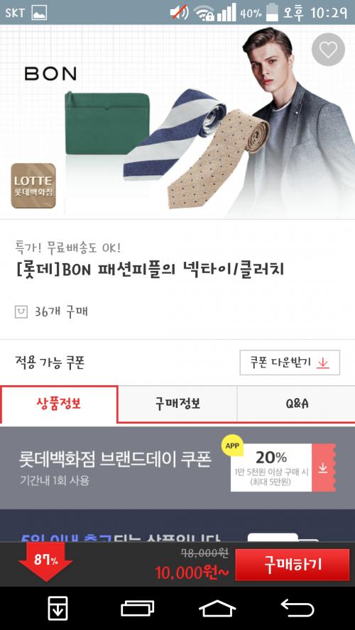 메일 와서 들어가보니 가격 괜차나서 올려봅니다 롯데백화점 만오천이상 20퍼 쿠폰 받고 적용하면 2개에 16000원이면 괜찮은것 같습니다