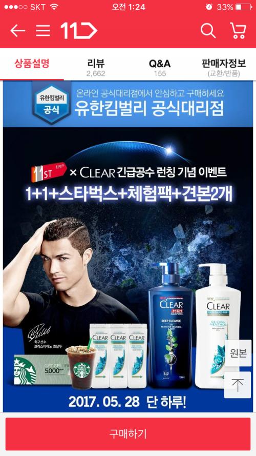 [11번가] 클리어 두피샴푸 700ml*2 + 스타벅스기프트 5천원 (13,900/무료)