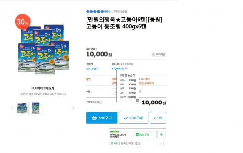 팽귄표 고등어 최저가 1320원대 6개 7920원에 비하면