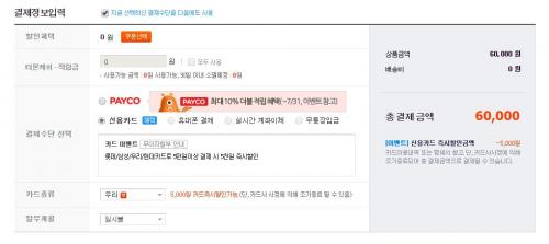 [이벤트] 신용카드 즉시할인금액 -5,000원 뜨고 결제도 5,000원 할인된 것으로 되어야 정상적용된 것입니다.