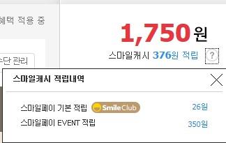 6월30일까지 스마일페이 이벤트적립이되서 350원 추가적립되네요.
