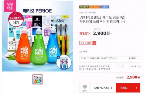 칫솔 부드러운모4개+초극세모4개 해서 2900원입니다