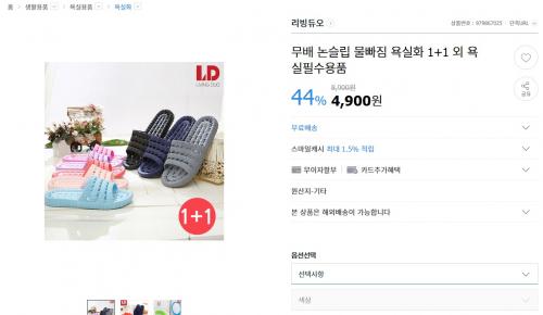 지마켓 에서 논슬립 물빠짐 욕실화를 1 + 1을 4900원에 무료배송으로 팔고있습니다. 좋은점은 같은색 2개구매말고