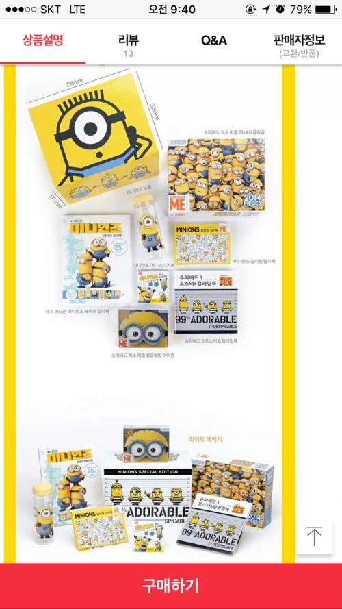 미니언즈 한정판!! 좋아하시는 분들이 계실까요~?보틀부터 컬러링북 등 미니언즈캐릭터가 잔뜩 들어간 스페셜에디션이라고 하네요