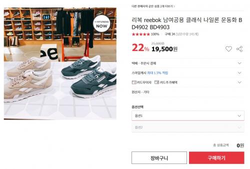옥션에서 리복 클래식 여성용 운동화를 19500원에 무료배송으로 팔고있습니다. 사진에는 남녀공용이라고 써있으나
