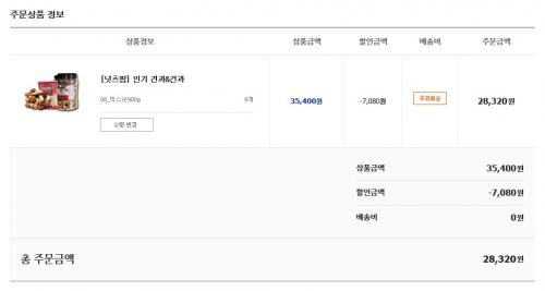 폰 적용하시면 추가 7080원 할인되어 28320원에 무려 믹스넛을 5.4KG를 받으실수 있습니다. 물론 다른 건과류도 같