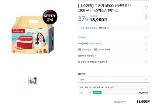 지마켓에서 네스카페 신선한모카 180T + 아이스박스를 18900원에 무료배송으로 팔고있습니다. 허나 1만5천원이상