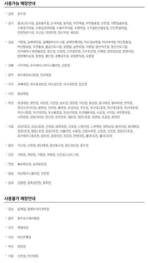 이미지가 흐려서 잘 안보이면 아래링크에서 사용불가&가능매장 확인해주세요