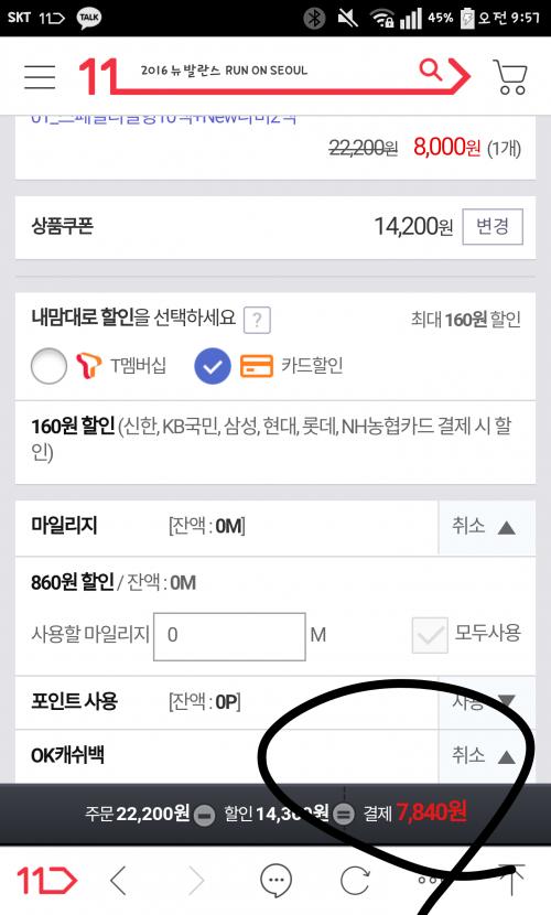 가격은 7840원 + 오늘 마일리지 11(-860)