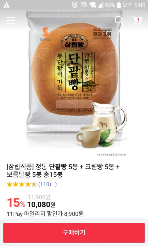 삼립 봉지빵 3가지가 각 5봉지씩해서 총 15봉지에요.