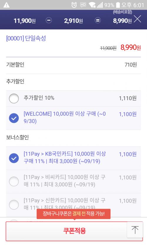 11페이 있으시면 8990원 까지 떨어져요. 여기서 마일리지 할인 몇백원 조금 더 들어갈 수 있어요.