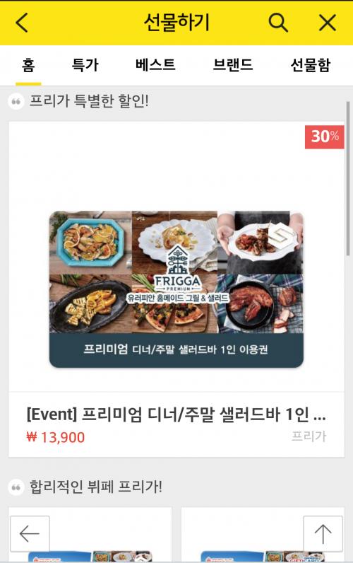 프리가 프리미엄 샐러드바가 카카오톡 선물하기에 30%할인 가격으로 올라왔네요.