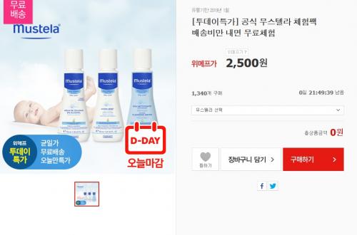 위메프에서 무스텔라 체험팩을 2500원에 무료배송으로 팔고있습니다. 구성은 클렌징워터 or 클렌징 젤 or 바디로션