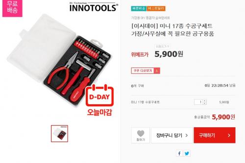 위메프에서 이사데이 이노툴즈 미니수공구 17종세트를 5900원에 무료배송으로 팔고있습니다. 인터넷 최저가 약
