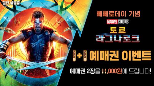 예스24에서 <토르: 라그나로크> 예매권 1+1 11,000원 판매 이벤트를 합니다.