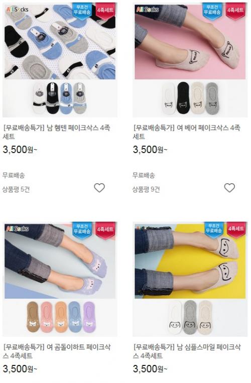남/여 심플베이직 페이크삭스 4족세트(3,800)