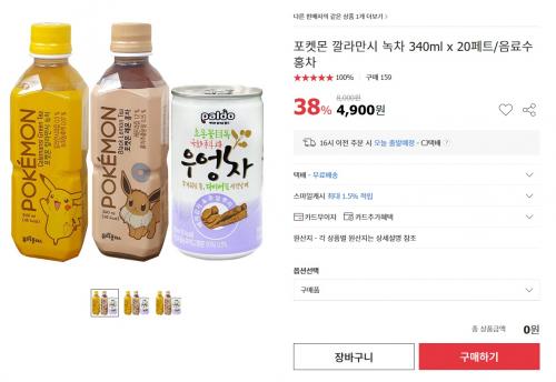 옥션에서 포켓몬 녹차,홍차 340ML X 20펫 or 우엉차 150ML X 30캔을 4900원에 무료배송으로 팔고있습니다. 포켓