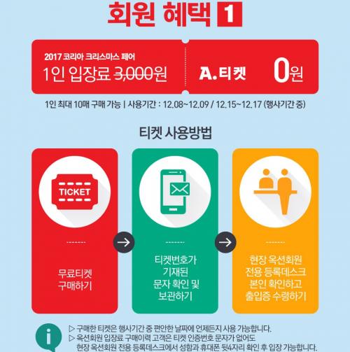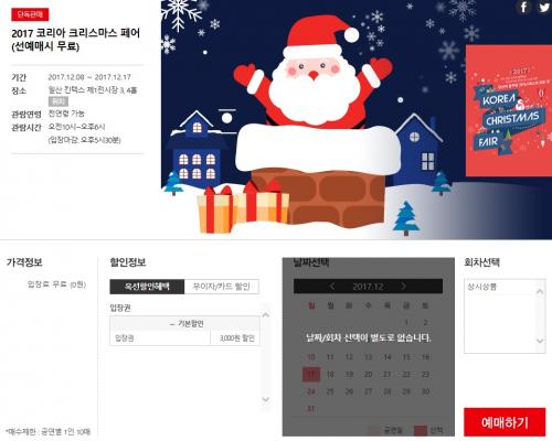 옥션에서 2017 코리아 크리스마스 페어 티켓을 무료로 팔고있습니다. 원래 티켓 가격은 3000원이나 선예매로 무료