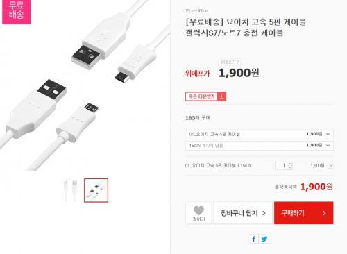 위메프에서 요이치 고속충전 5핀 숏 케이블 15cm을 1900원에 무료배송으로 팔고있습니다. 요이치 제품은 엘지 스