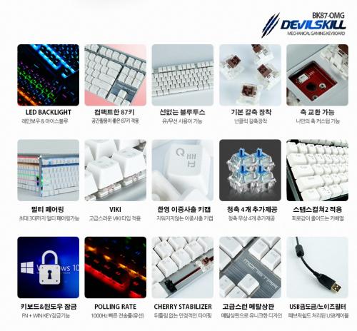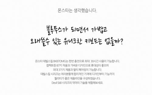 컴퓨존에서 몬스타 데빌스킬 BK87OMG 기계식 블루투스 키보드 갈축을 59800원에 유료배송으로 팔고있습니다.
