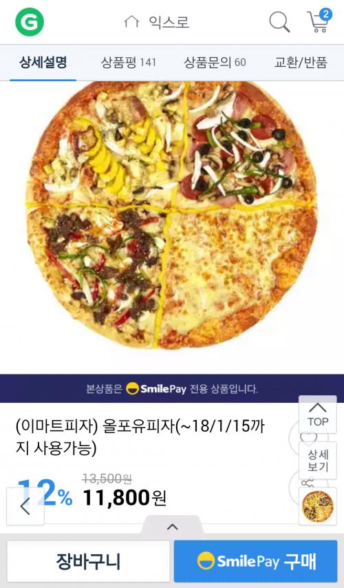 [G마켓] (이마트피자) 올포유피자(~18/1/15까지 사용가능) (11,800원/픽업)