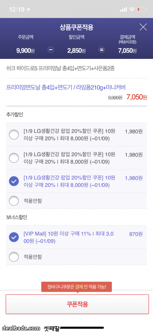 VIP등급 이상분들은 추가로 11% 중복쿠폰 적용됩니다 (7,050원)