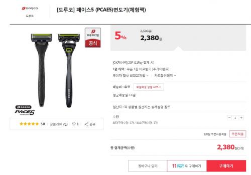 도루코 페이스 5 (PCAE5) 면도기 체험팩 행사중 이네요..