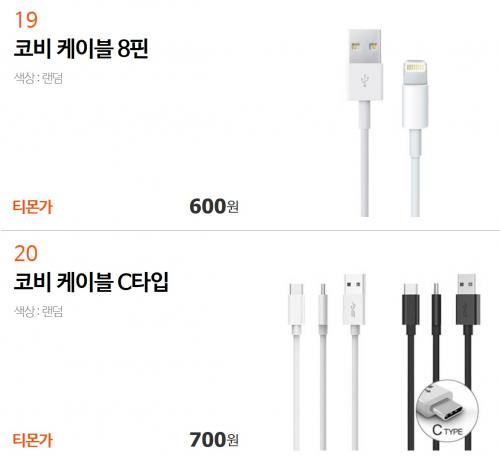 치대는 100원,700원,1500원까지 있으며 케이블은 600원,700원,1500원까지 있습니다. 추가로 네이버 9프로 쿠폰 적