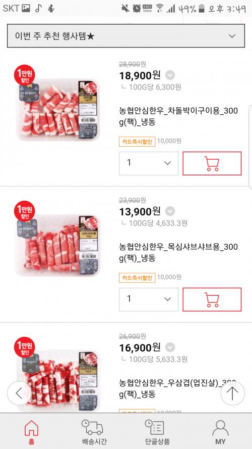 11번가 통해서 구매하면 쿠폰적용도 되서 더 싸긴한데 고기는 카드할인가로 안잡히네요