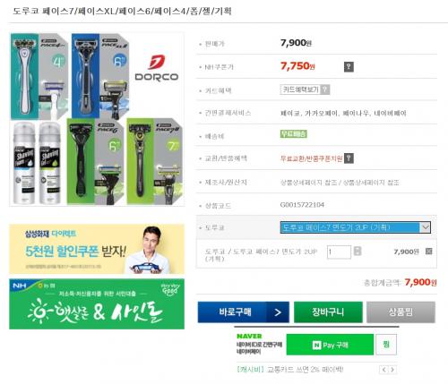 네이버쇼핑에서 페이스7 II 면도기 + 면도날 3개를 7900원에 무료배송으로 팔고있습니다. NH쇼핑이긴한데 네이버