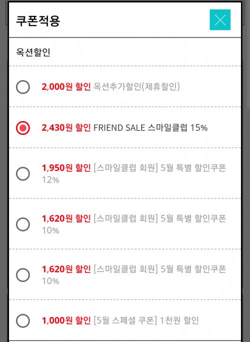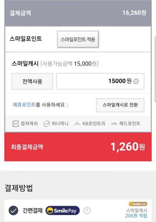 에서 프렌즈 스마일클럽 15%쿠폰을 받으면 430원 정도 더 싸게 구입 가능합니다. 모두 스마일캐쉬로 결제하지말고 100원은 남겨 결제하시면 스마일캐쉬 200원가량 적립됩니다.