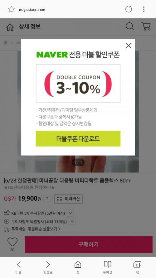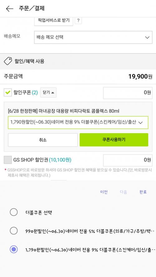 네이버 경유했을경유 9프로 추가할인되어 최종18110원 입니다