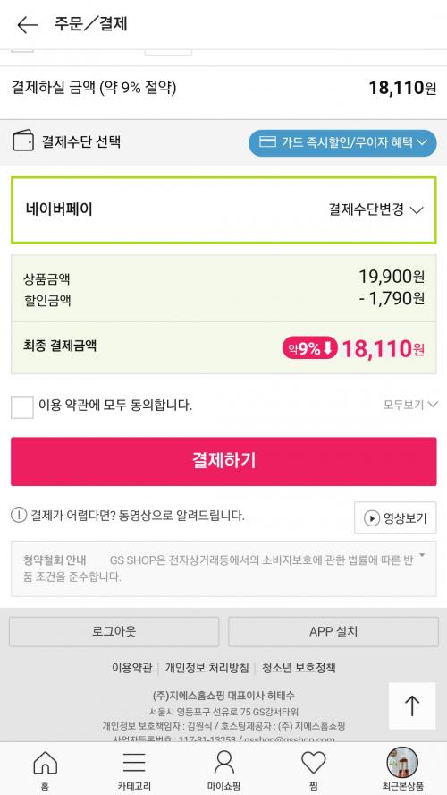 네이버페이로 결제도 가능합니다.
